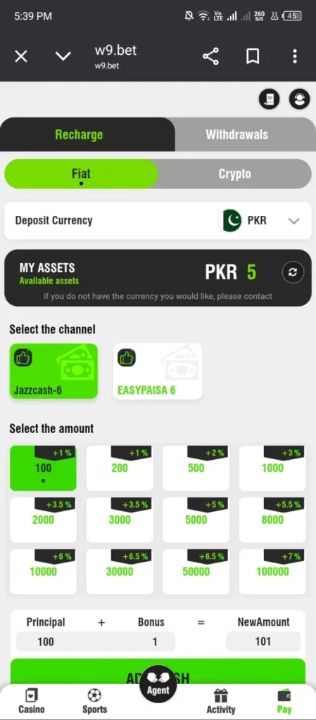 5. What payment options are available on W9 Bet?